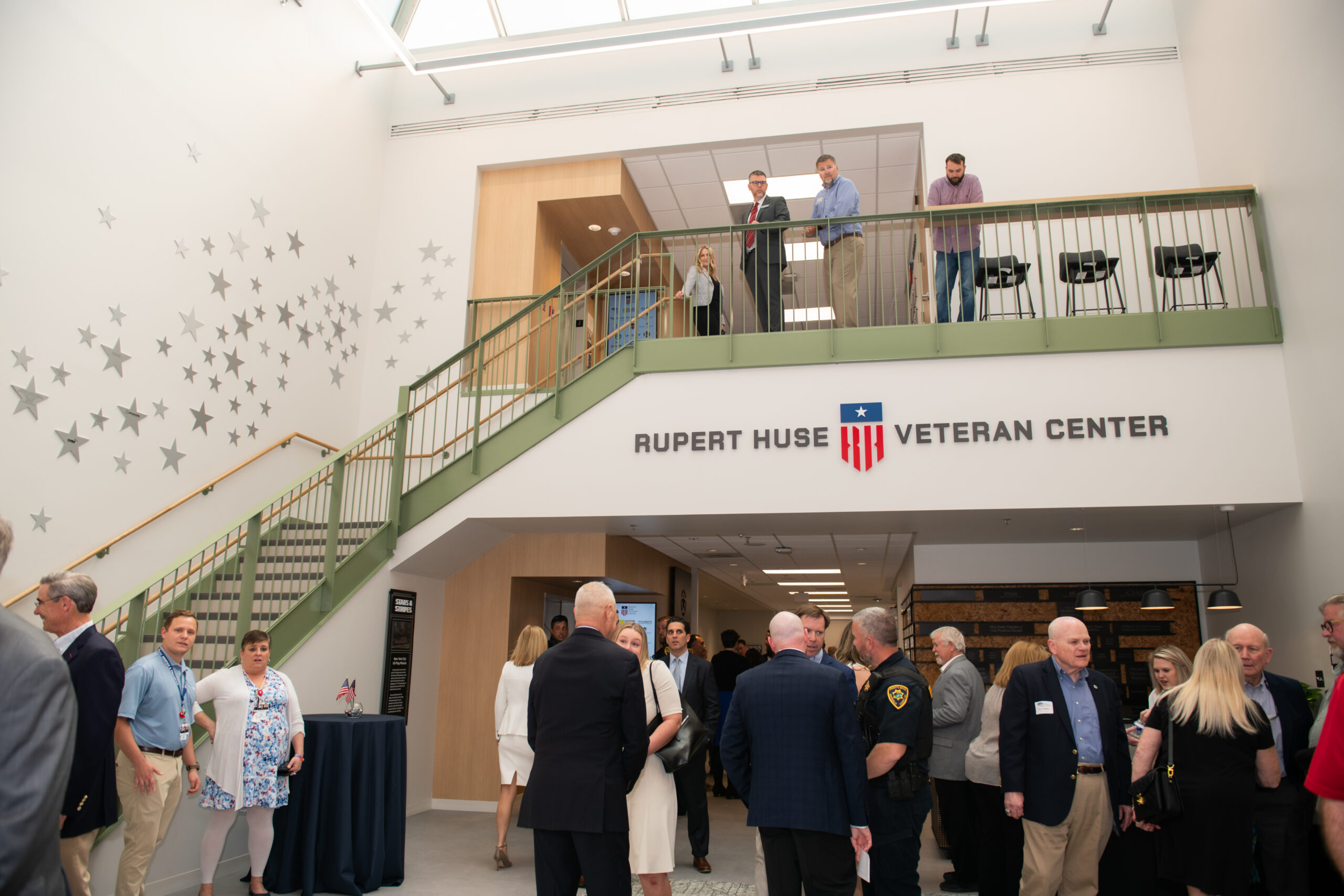 Our mission has always been powered by community support. Located in the lobby of the Rupert Huse Veteran Center, the Star Wall offers individuals and corporate partners a meaningful way to honor those who serve and help sustain our work. Each personalized engraved star celebrates patriotism, remembrance, and lasting support.